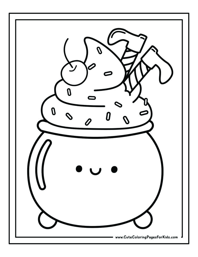 Get ready to dig into this tempting witch’s brew! There’s plenty of sweet topping on the cute cauldron to color.